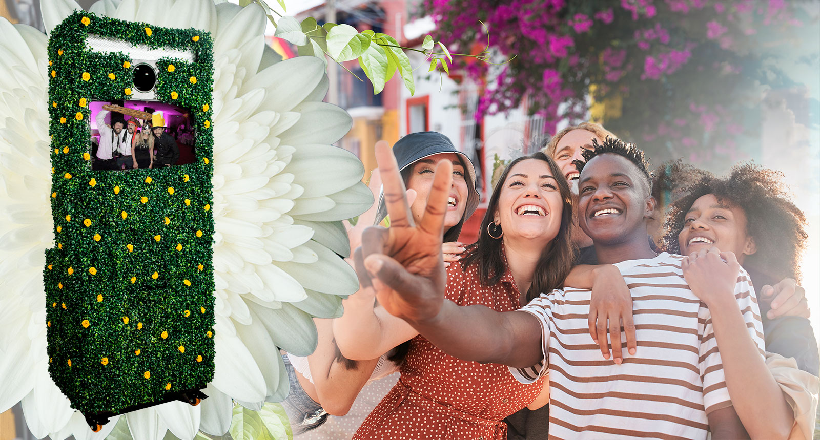 Nuestras modernas fotocabinas cuentan con pantallas táctiles y cámaras de alta calidad. Los invitados pueden elegir entre una variedad de accesorios y fondos para crear fotos personalizadas.